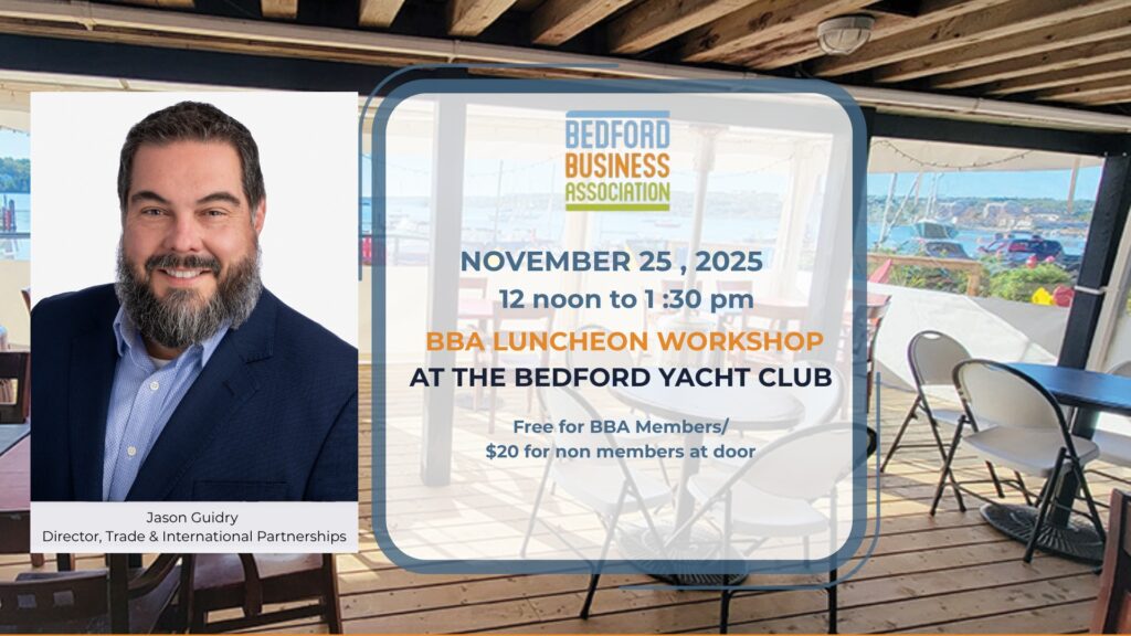 BBA Luncheon – Thursday, April 17 12-1PM @ BBYC with Guest Speaker Jason Guidry- Director, Trade and International Partnership at The Halifax Partnership